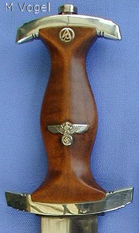 Dagger Information – NSKK standard EM The dagger worn by the NSKK in 1933 was the same as the one worn by the SA, including the brown scabbard. In 1936, NSKK korpsfuhrer, Adolf Hunlein, ordered that the scabbards of all NSKK daggers be painted black instead of having the brown finish. The debate on these rages on even after 50 years of the facts being exposed, that the SA and the NSKK wore the same dagger and had the same Gau markings, some still can’t fathom this. This is due to the lack of reading and or the lack of ability to learn. There is NO argument about this at all - its fact. The only difference is the black paint that can vary in workmanship from looking like it was done with an old rag to a professional paint job, having the base sanded down and repainted. One point I should make is this, which is at the time spray painting was not a method used. The scabbards were dipped in a vat of black paint and polished out. So run marks on period-repainted scabbards can be found. Plus one can also throw into the mix that the paint was lead based so it chips when aged as well as crazing "small cracks in the finish." If the scabbard was pained with a paintbrush there can be brush lines too! Depending on the storage of the dagger, the paint can show the above problems and others like white oxidization, and rust. Just to name a few. Ernst Rohm was the head of all three of the units early on. That being the SA, NSKK and the SS. Only after Rohm’s death did these groups gain independence and separate leaders, like Himmler, Lutz, etc. All other features of the dagger remained the same as the SA dagger with the additional authorization to wear a leather frog when on route marches or military exercises. The frog and vertical hanger as well as the short strap and three piece hangers were black leather rather than brown leather like the SA dagger. As with the SA and the SS daggers, late made daggers suffered from poor quality materials. The scabbards were finished in a thick black paint that was buffed to a high gloss. Edited by Bruce Petrin |